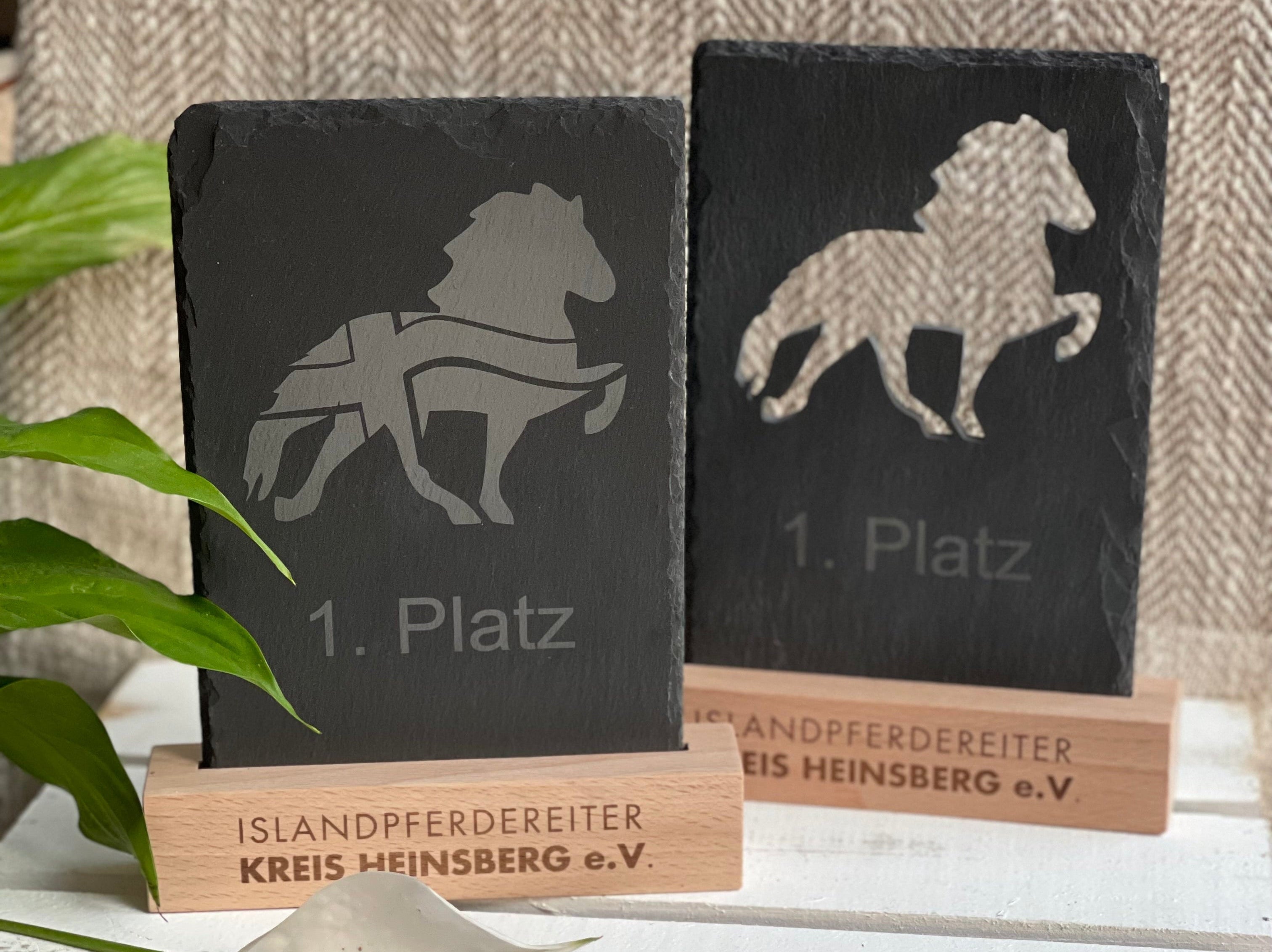 Schieferpokal in Buchensockel (li=graviert / re=gefräst)