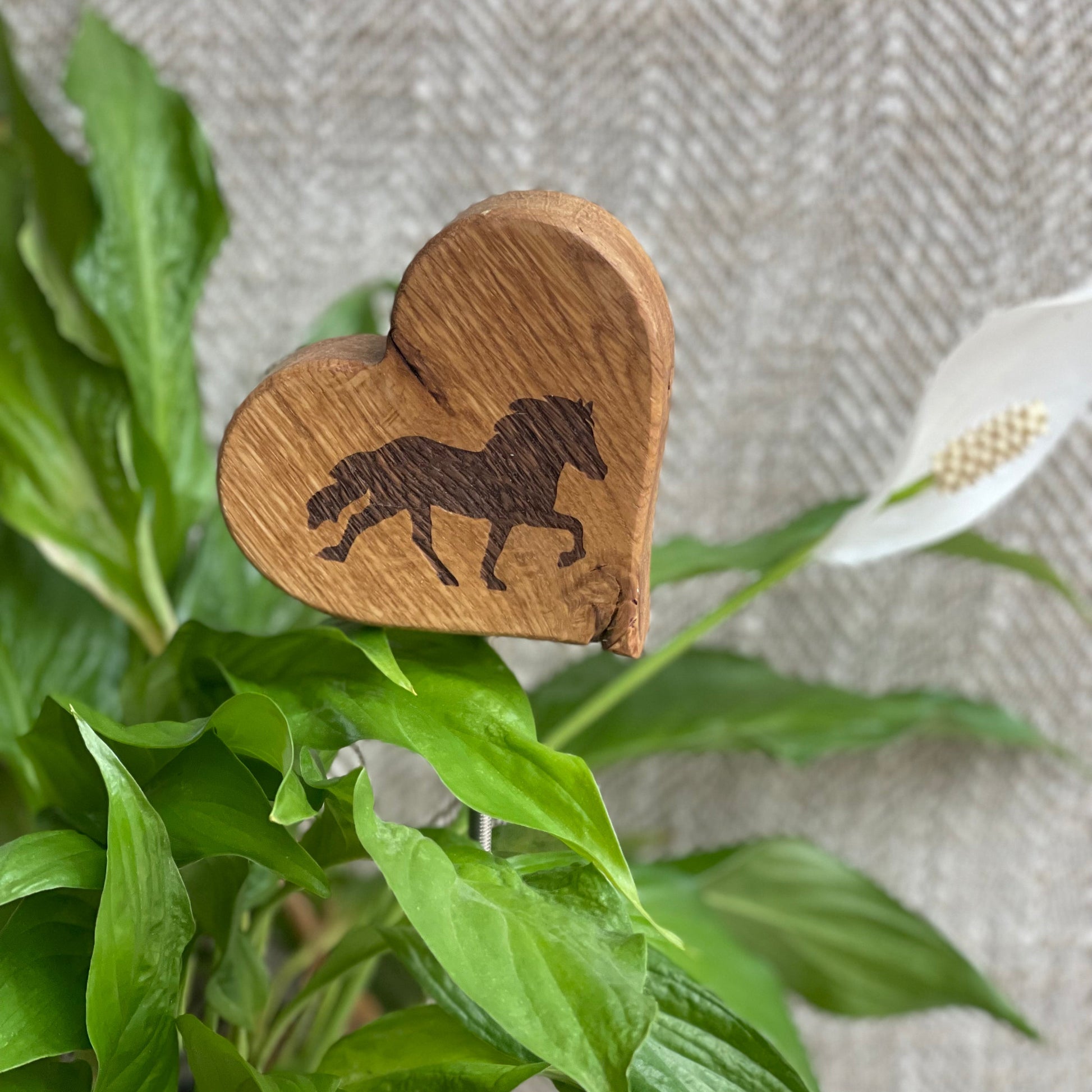 Setze ein liebevolles Statement in deinen Pflanzen! Unser Blumenstecker aus massivem Eichenholz zeigt ein Herz mit beidseitig eingelasertem Tölter-Motiv – stilvoll und langlebig.