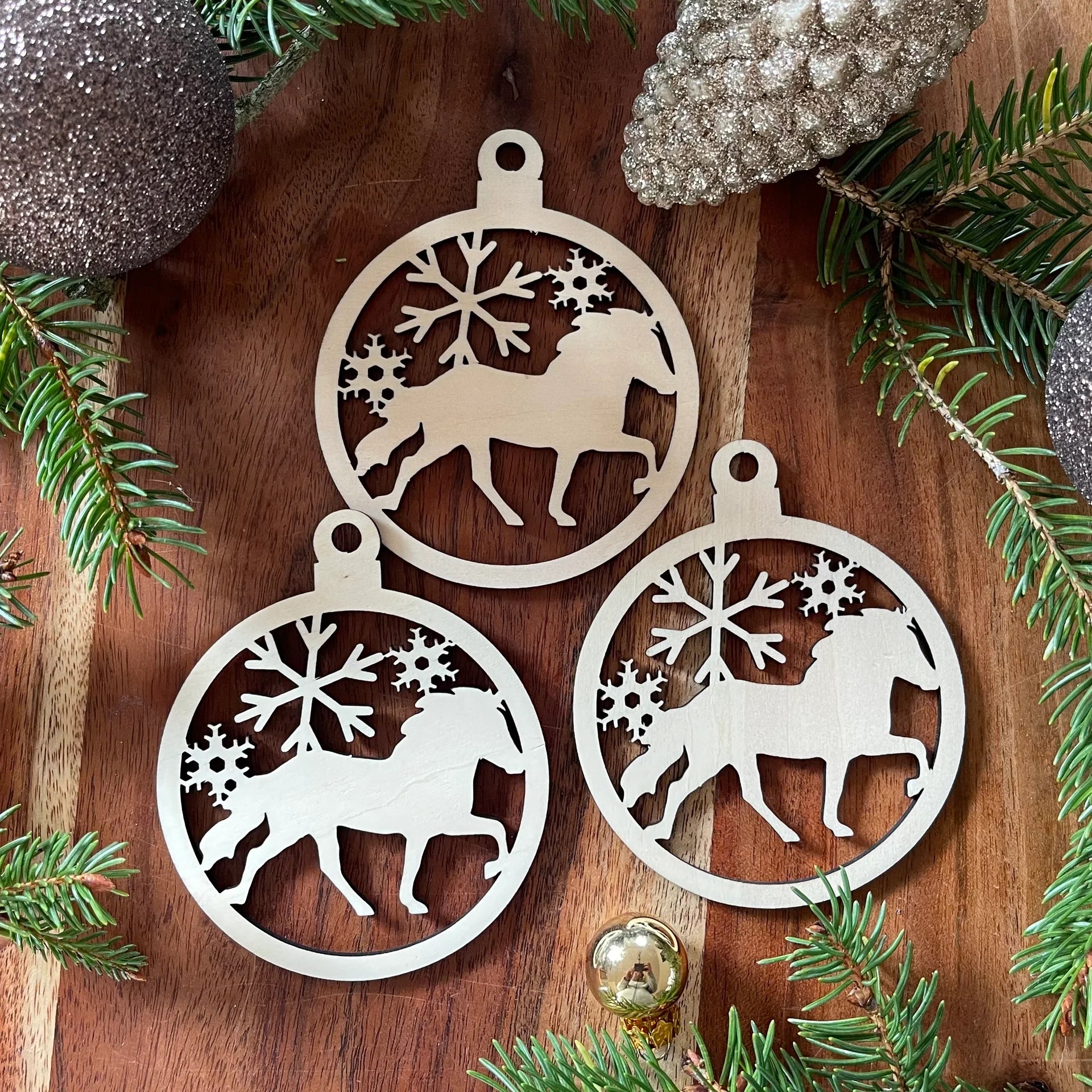 Christbaumkugel "Tölter mit Schneeflocken"