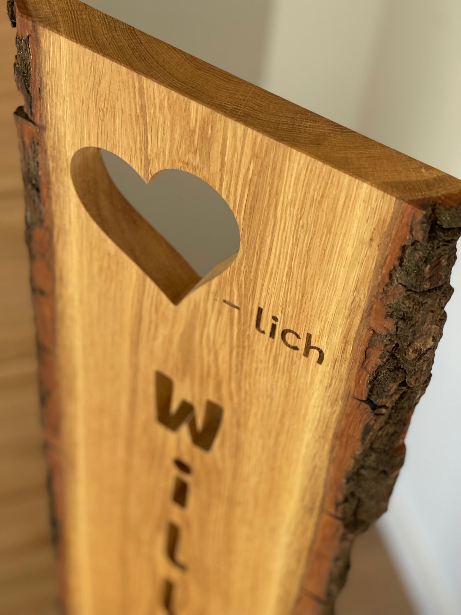 - Schriftzug „Herzlich Willkommen“ ausgefräst