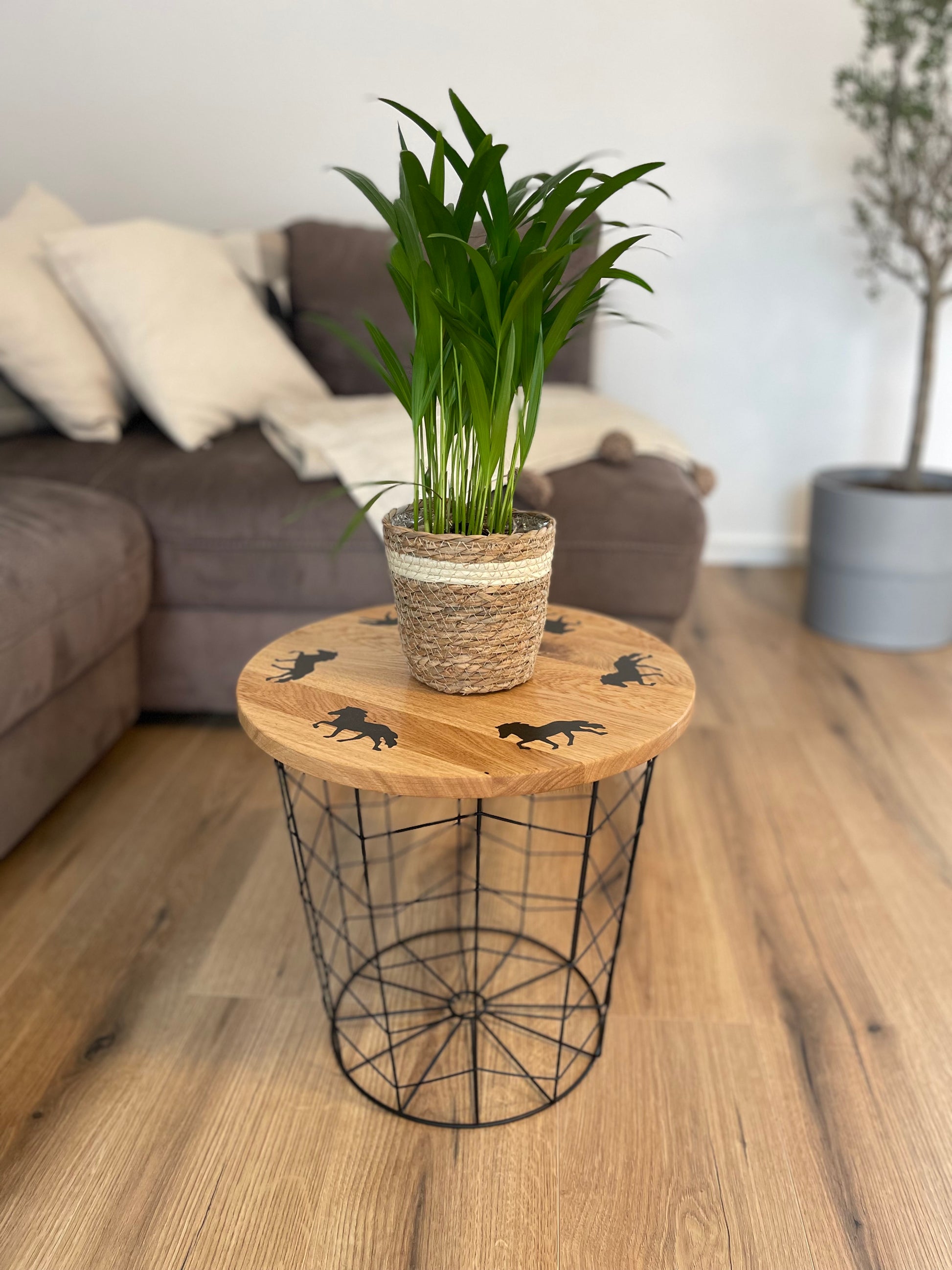 Das filigrane Metallgestell sorgt für Stabilität und verleiht dem Tisch eine leichte, moderne Note – perfekt für Wohn- oder Reitliebhaber*innen mit Sinn für edles Handwerk.