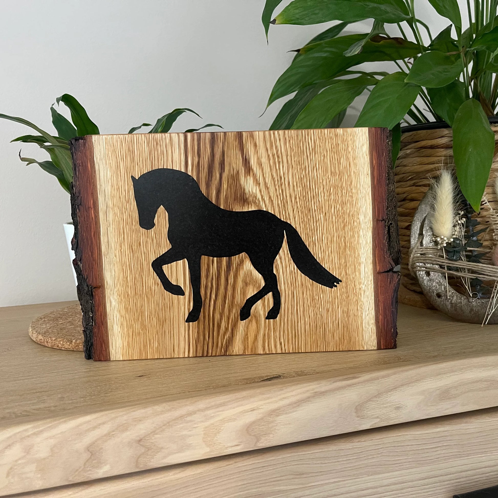 Ob im Wohnbereich, Büro oder Reitstall – dieses Holzkunstwerk bringt Pferdeliebe und Handwerkskunst auf ganz besondere Weise zusammen.