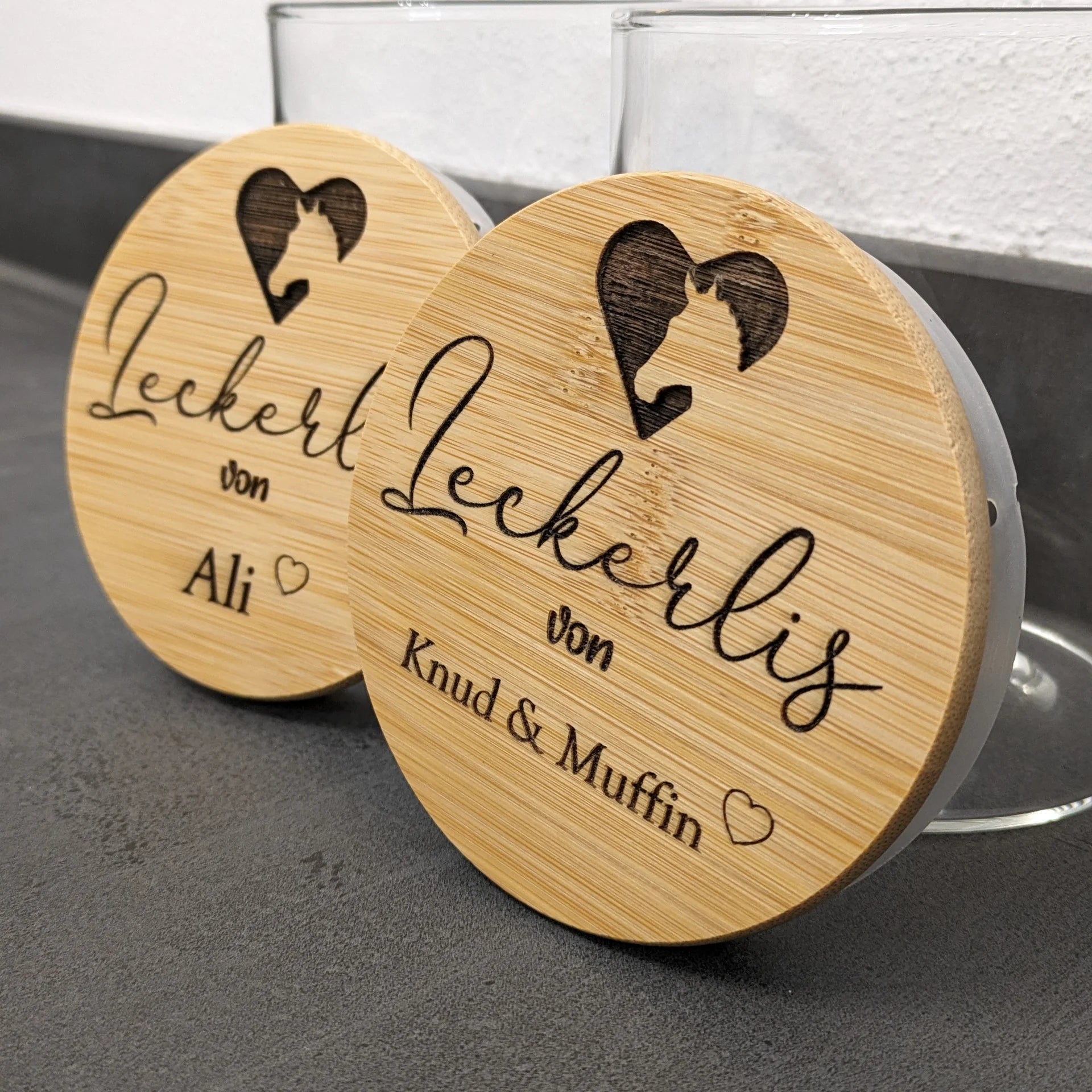 - Material & Deckel: Glas mit graviertem Bambusdeckel – nachhaltig, elegant und praktisch
