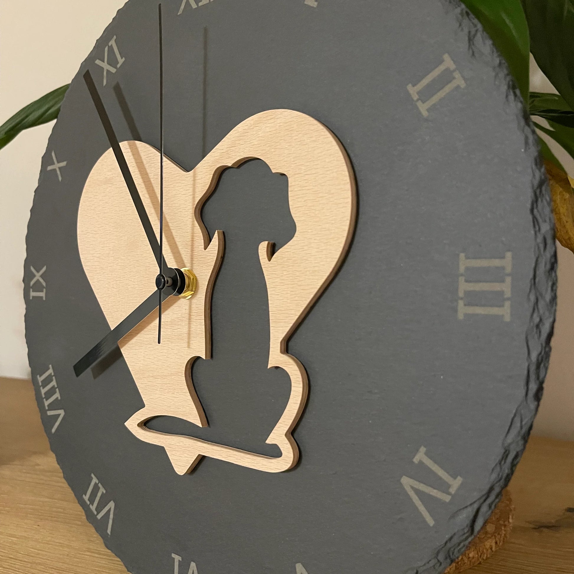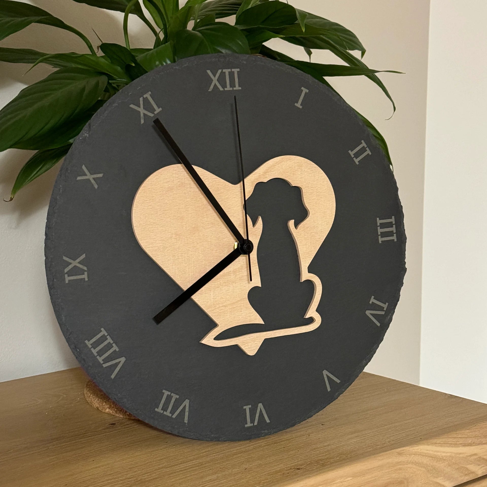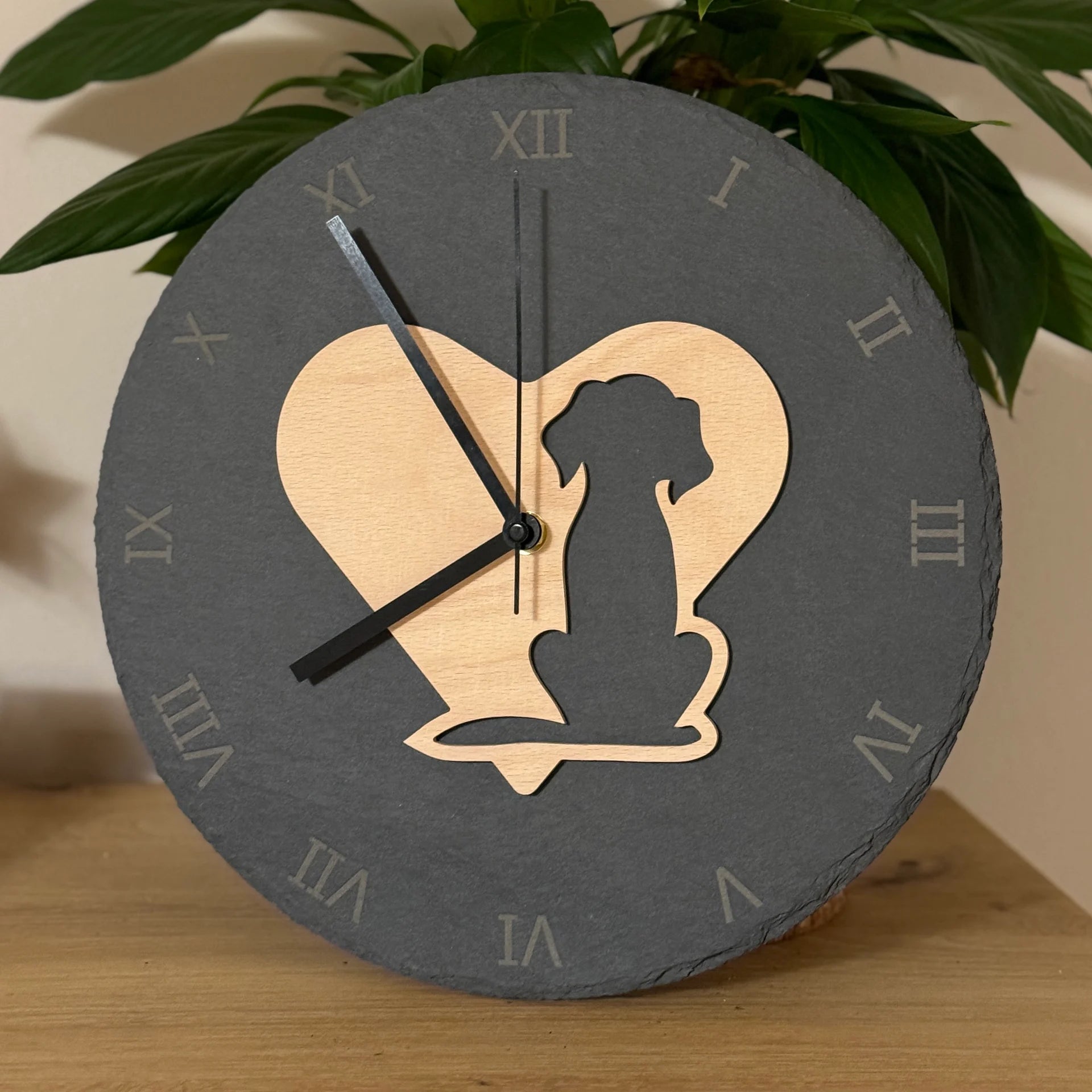 Schieferuhr mit Hunde-Motiv – Zeitlose Eleganz für Hunde-Fans