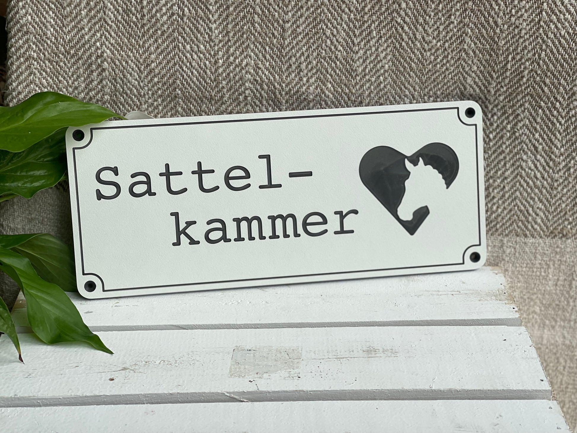 Stallschild "Sattelkammer" mit Pferd im Herz