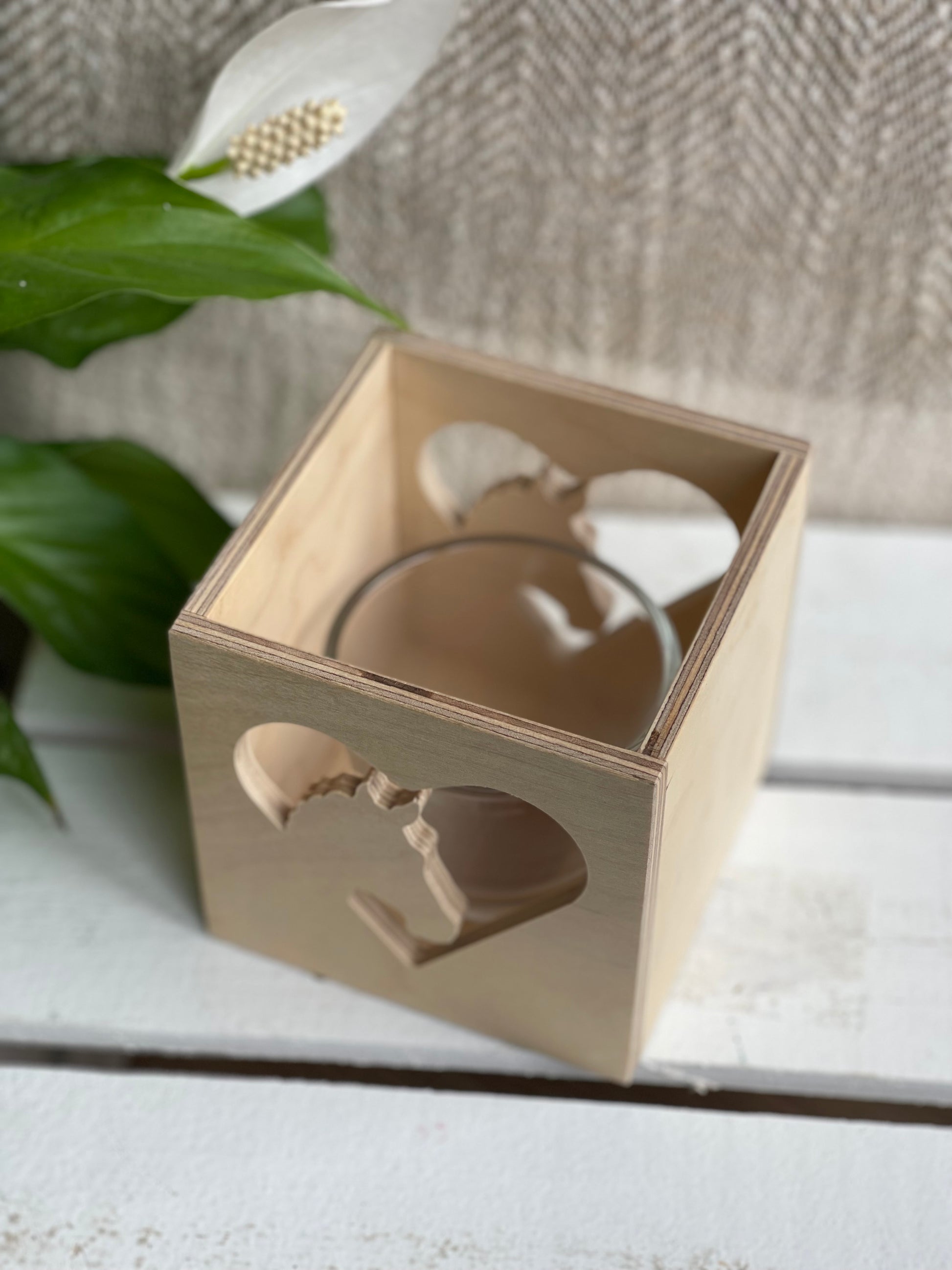 Erleuchte die dunklen Abendstunden mit einem Windlicht, das Liebe zum Detail ausstrahlt. Jedes Windlicht wird in unserer Werkstatt Schritt für Schritt aus einer Holzplatte gefertigt – von Hand, sorgfältig und mit viel Herz.